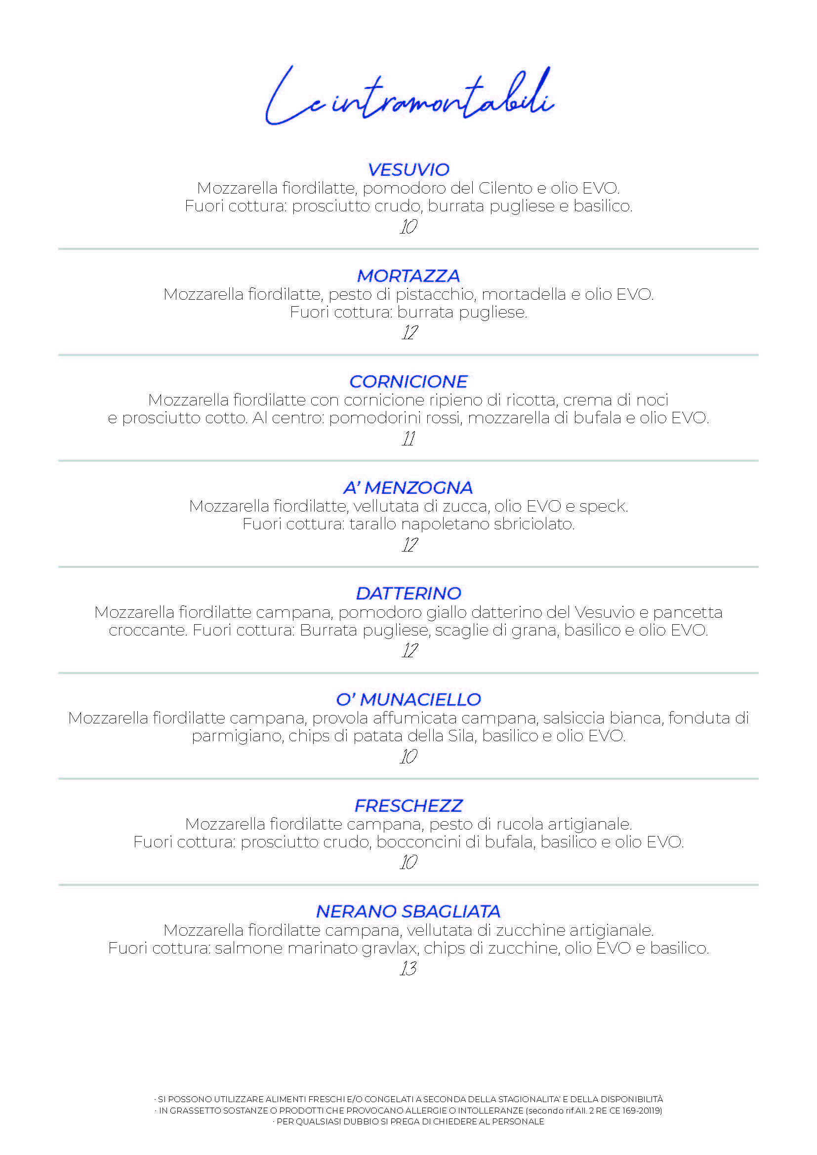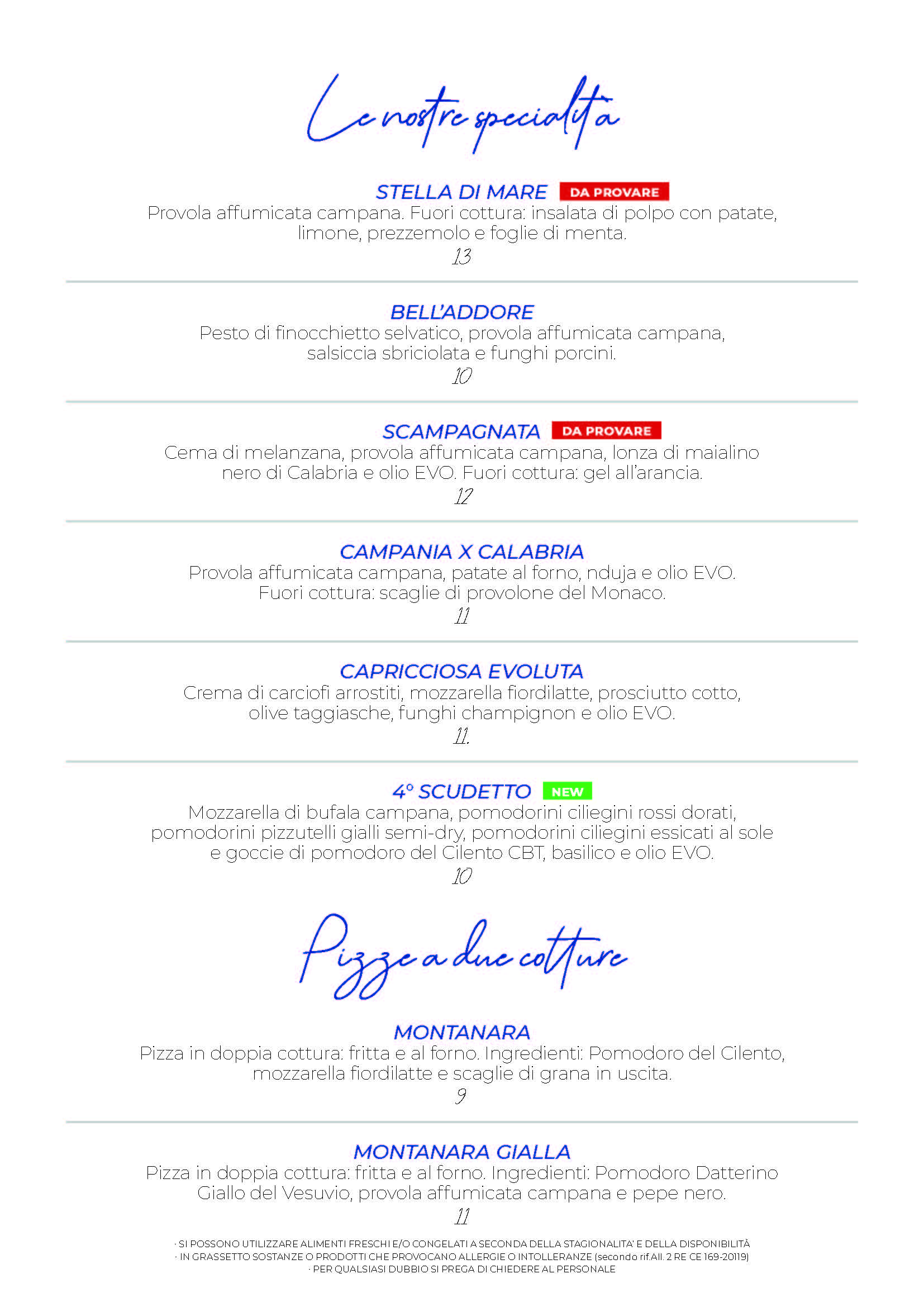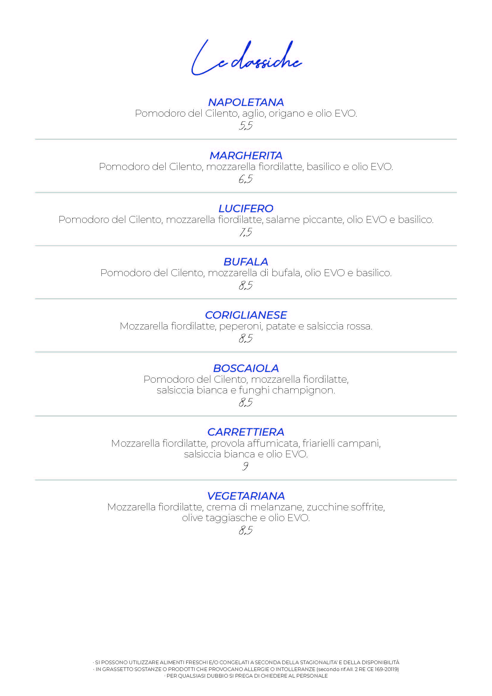 Menù Pizzeria